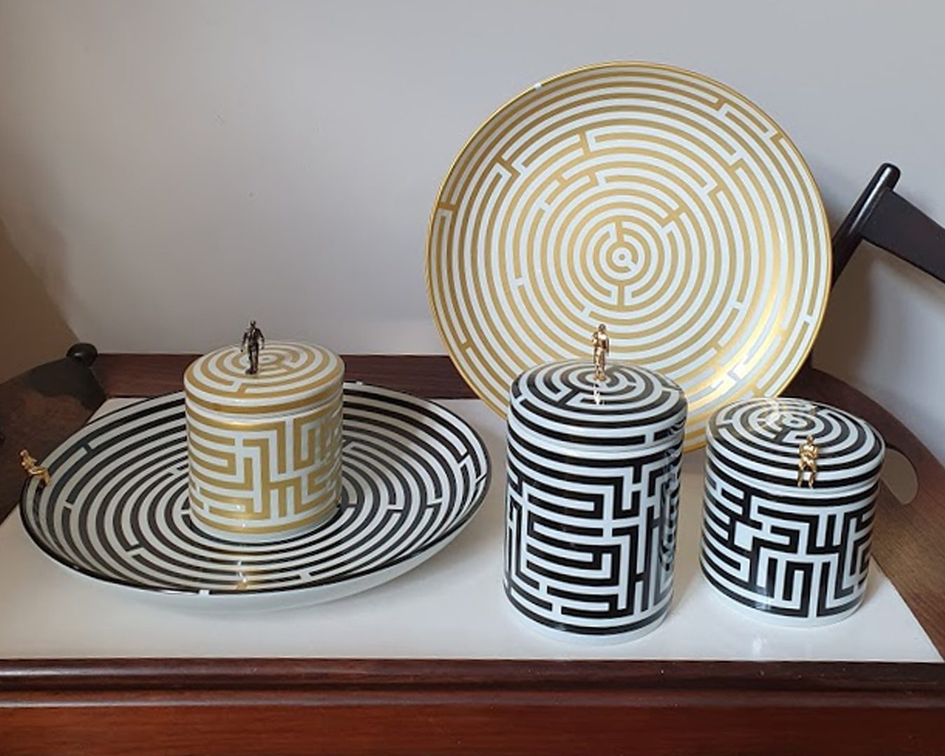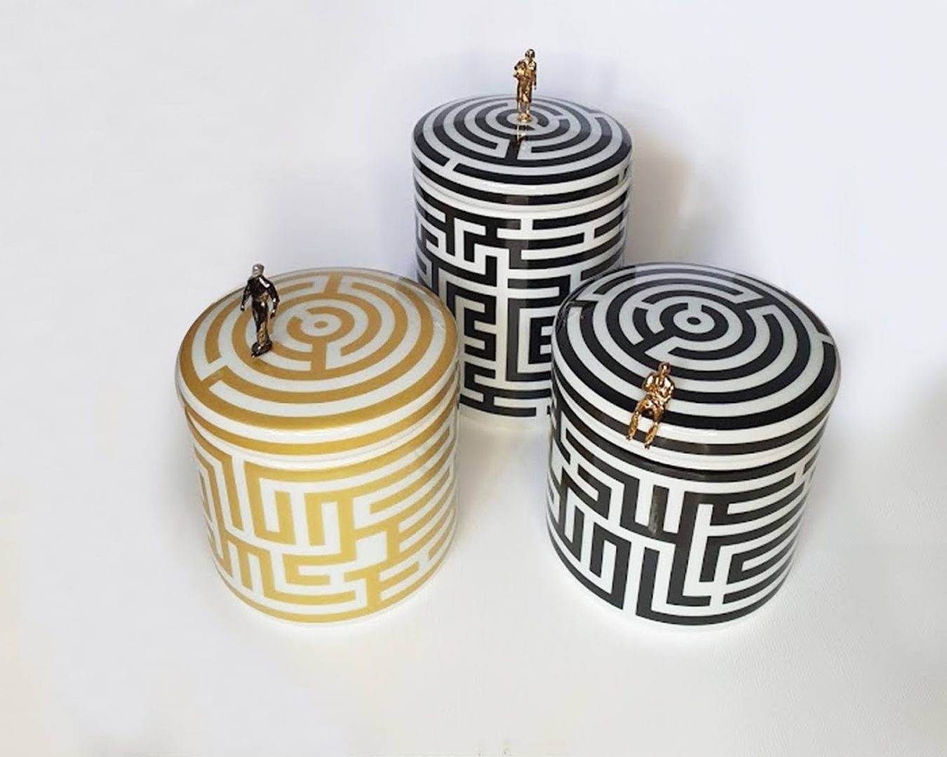 O Studio começa o mês de agosto com duas novidades. A Coleção Emoções Urbanas Heaven cresceu e acaba de ganhar novos copos e taças com desenhos autorais da artista. A família Labirinto também ganhou novos membros: agora além do pratos de porcelana com 30cm na cores preto e branco ou dourado do e branco, chegaram os s potes com tampa em duas alturas.