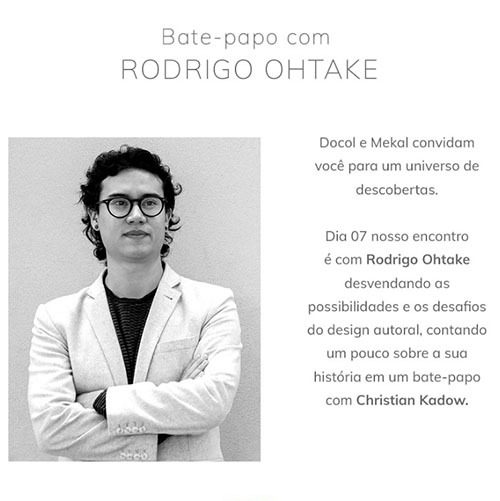 Docol e Mekal convidam você para um universo de descobertas. Nosso encontro é dia 7 com Rodrigo Ohtake desvendendo as possibilidades e desafios do design autoral, cantando um pouco sobre a sua história em um bate-papo com Christian Kadow